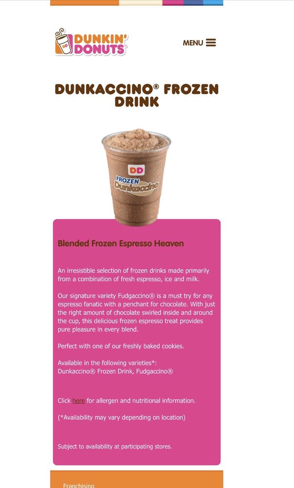 Our Frozen Coffee is made with real Dunkin' coffee, delivering a smooth, creamy coffee-forward flavor.